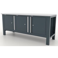 Конструкция верстака рамная. Размер: 1880х640х850h мм. Столешница - влагостойкая фанера 27мм. покрытая оцинкованным кожухом 1,2мм. Тумба с дверью и полкой - 3 шт.